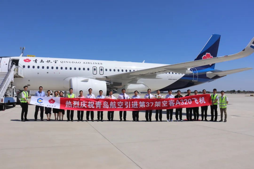 6月27日9时53分,一架身披全新耐冬花涂装的空客A320neo飞机从法国图卢兹顺利抵达青岛胶东国际机场,这是青岛城投集团旗下青岛航空今年到场投入运营的首架新飞机,注册号为B-32AM,标志着青岛航空全空客机队规模扩增至37架,运力规模进一步扩大。