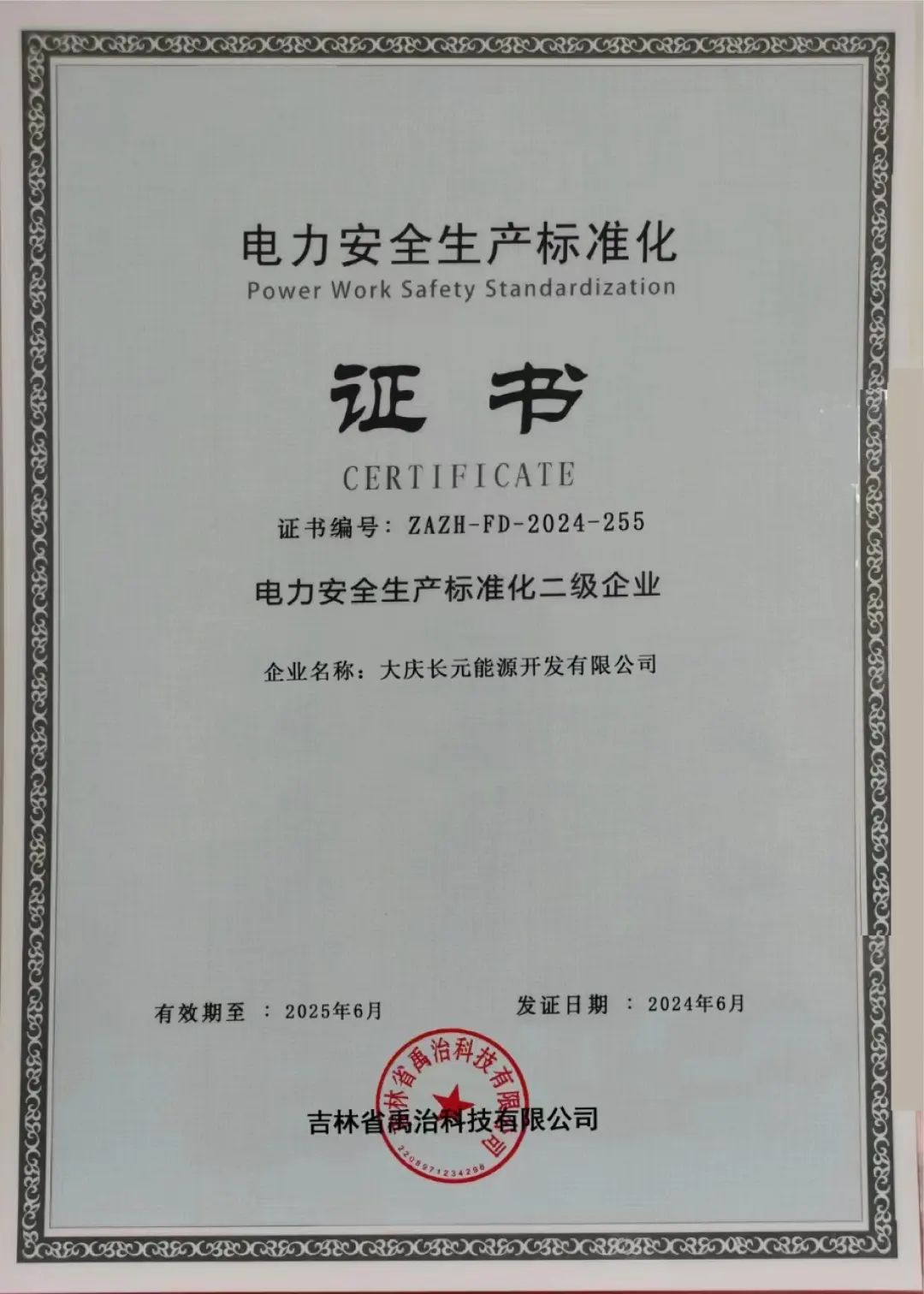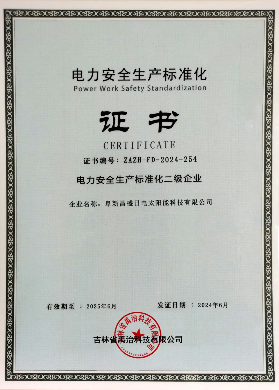 近日,青岛城投集团旗下新能源集团所属的三家项目公司阜新昌盛日电太阳能科技有限公司、东丰丰盛太阳能科技有限公司和大庆长元能源开发有限公司,成功通过了电力安全生产标准化企业二级达标认证,并荣获了电力安全生产标准化二级企业证书。这一成就是青岛城投新能源集团在安全生产标准化和安全管理体系建设方面取得的重要进展。