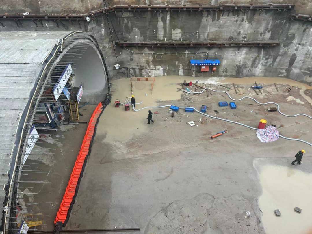 7月20日凌晨全市普降暴雨,交发集团立即对唐山路快速路工程项目顶管始发井接收井、隧道边仰坡、地道调流路、桥梁基础深基坑及隧道内炸药临时存放处等关键安全区域开展夜间雨天安全巡查,并对应急物资准备情况进行检查。因暴雨造成的调流路内涝积水、边仰坡排水不畅等问题,项目组立即组织人员、机械等作业力量紧急投入积水抽排工作,并同步组织人员加固施工围挡、临建设施和脚手架立杆基础等设施,确保汛期施工现场安全平稳有序。