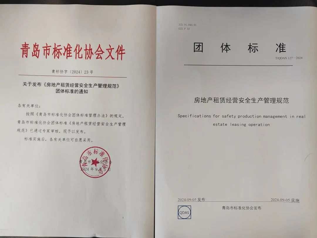 近日,由青岛城投集团安企部和城投集团旗下商管集团主编的青岛市团体标准《房地产租赁经营安全生产管理规范》(T/ODAS 127-2024)(以下简称《规范》),通过青岛市标准化协会审核,于2024年9月5日正式发布实施。