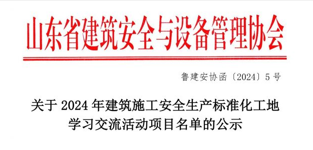 入选山东省2024年建筑施工安全生产标准化工地学习交流活动项目。