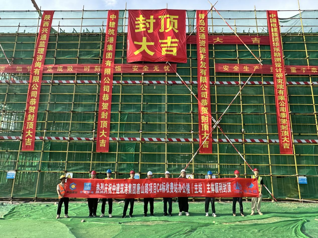 近日,唐山路快速路工程C4标段迎来重要建设节点——收费站办公楼(主站)顺利完成封顶。该工程由青岛城投集团旗下交发集团投资建设、中建筑港集团有限公司承建。此次封顶标志着项目控制性工程取得重大进展,为后续施工奠定了坚实基础。