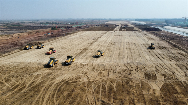 在中国电建市政建设集团有限公司承建的官路水库围坝工程4标段施工现场,围坝填筑、铺设联锁块、防渗墙等环节,也都得益于“数智”赋能,不断刷新着施工“进度条”。