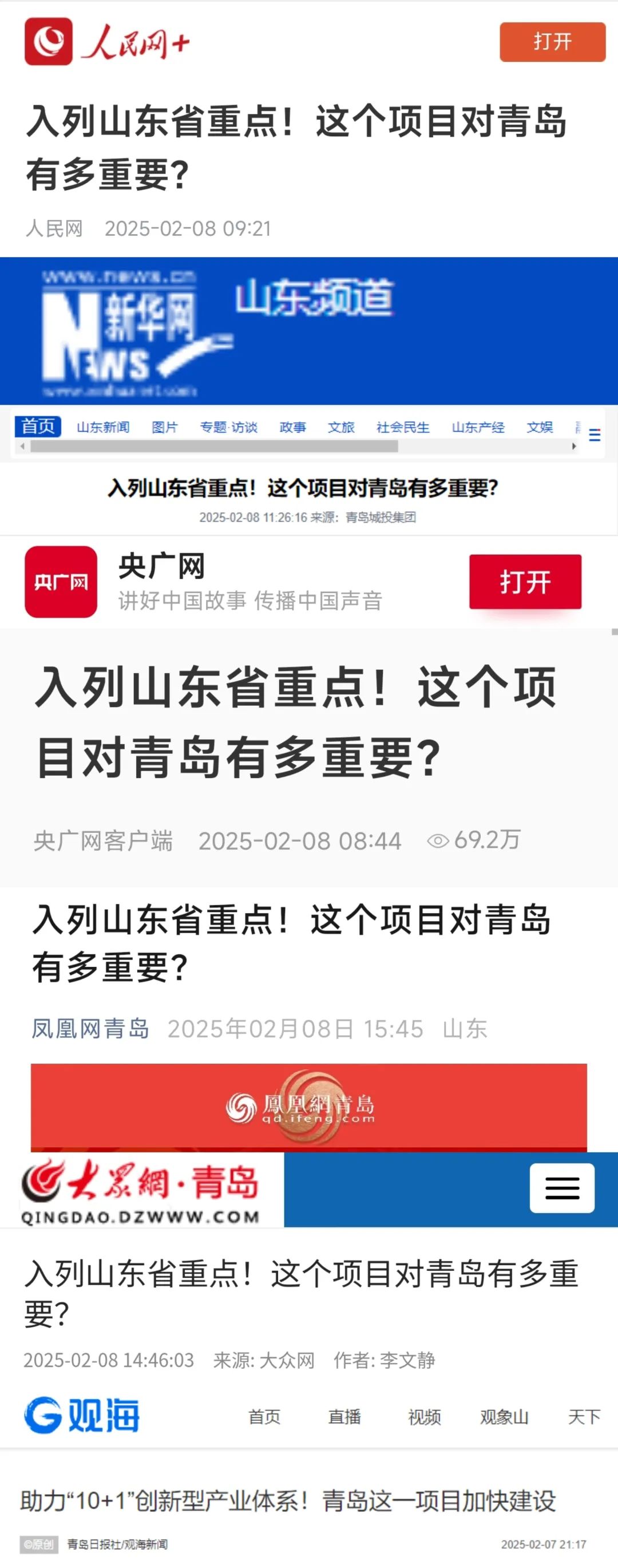 近日,山东省政府公布《2025年山东省重大项目名单》,青岛城投集团奇瑞超级工厂新建KD车间项目入选省级重大建设项目,人民网、央广网、新华网、凤凰网、大众网、青岛日报等多家权威媒体对该项目进行了集中深度报道,浏览量超600万次,获得社会广泛关注。有关报道原文如下: