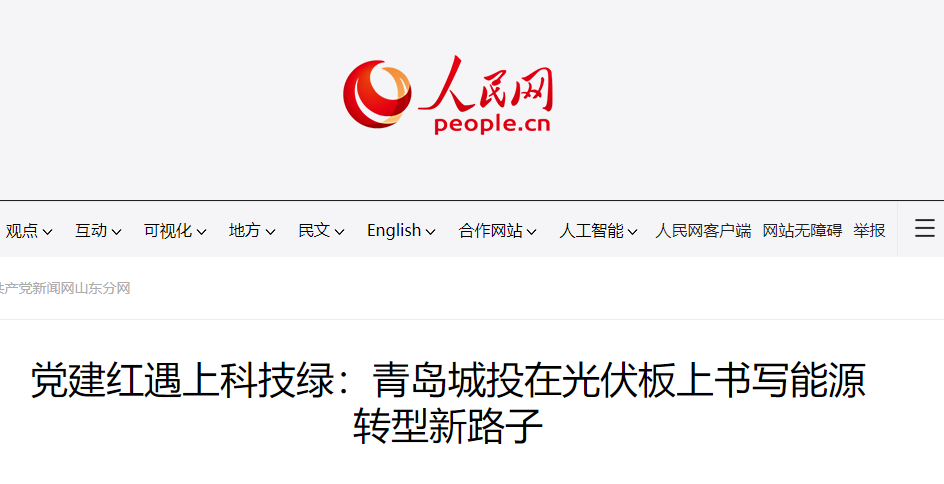 人民网点赞:青岛城投在光伏板上书写能源转型新路子